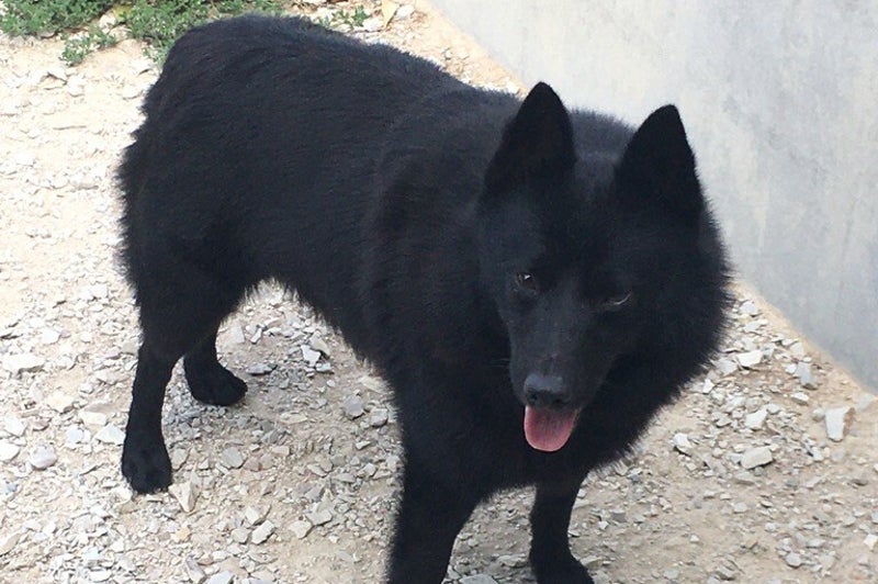 Bovendien is ze volledig zwart, stokhaar – vrij van langhaargenen – en heeft een lange staart.