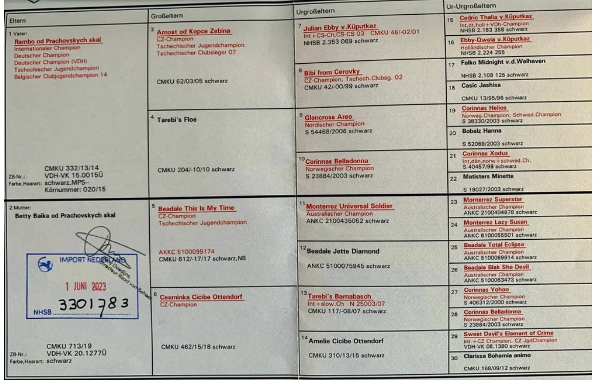 Dit laat mooi zien hoe de Duitse, Franse en Tsjechische invloeden samenkomen in de lijn van haar ouders en bijdragen aan het rastypische karakter en de uitstraling van Rox.